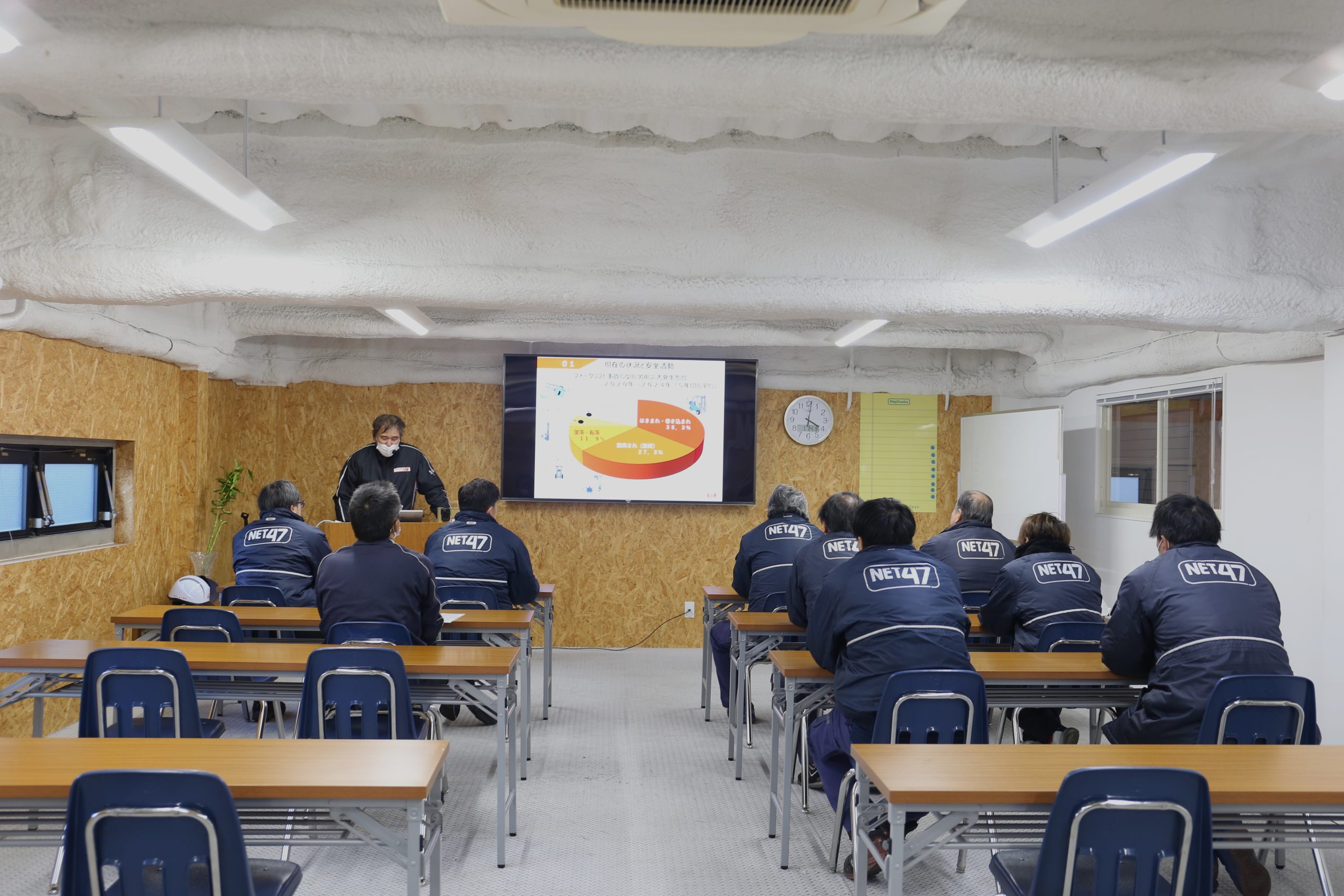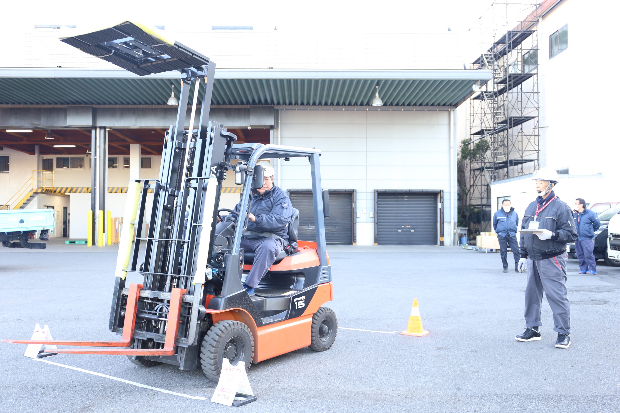 本講習会では、安全運転への意識向上およびフォークリフト事故の削減を目的に、座学と実技講習を行いました。座学ではフォークリフトの特徴や安全工夫対策について学び、実技ではカウンターフォークリフトを使用した安全運転講習を実施し、講師の方よりフィードバックをいただきました。